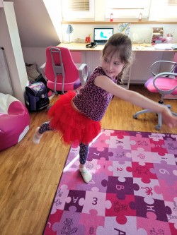 V distanční výuce doma nezahálíme. Teď je třeba se hýbat snad ještě víc než když jsme mohli chodit do školy. Roztočili jsem si "Kolo štěstí", správně přečetli instrukce a zacvičili správně cvik. Jak se nám to daří můžete zhlédnout na přiložených fotografiích :-).
