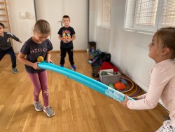 Naším prvním dobrodružstvím a výzvou bylo poznat své spolužáky, paní učitelku a prostory školy. Proto k nám zavítaly lektorky Střediska volného času Ivančice a také školní psycholožka Mgr. Jeanette Vrtková. S jejich pomocí jsme se zábavnou formou učili jména nových kamarádů, poznávali jsme jejich koníčky a zájmy, učili jsme se také, jak si pomáhat, podporovat se a spolupracovat.