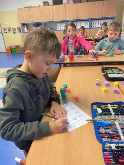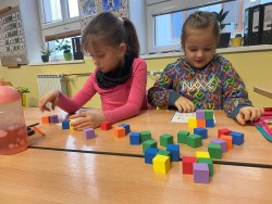 2. 3. 2023 V hodinách matematiky procvičujeme prostorovou představivost. Děti počítají krychle, staví a zakreslují stavby do plánku. 1 / 4 / 2023 MJa