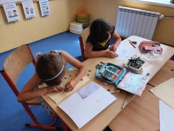 Poslední centra aktivit byla o penězích. Peníze a finanční gramotnost je součástí každodenního života. V centru matematiky vymýšleli vlastní příklady s papírovými mincemi na porovnání a zahráli si karetní hru "Na zloděje". V centru čtení a psaní třídili zboží do jednotlivých obchodů a vymýšleli, co ještě si můžou kde zakoupit. V centru ateliér se naučili frotáž mincí a vytvořili návrh bankovky. V centru pokusů a objevů měli přichystaný pokus s vodou, svíčkou a sklenicí. Úkolem bylo vyndat z vody mince suchou rukou a jak na to? Museli sami vymyslet postup.