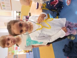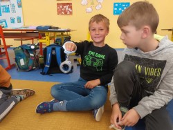 V měsíci květnu jsme se ve škole učili o povolání. Do školy jsem pozvala rodiče, kteří své povolání prezentovali. Největším zážitkem byla možnost zkusit si různé pracovní pomůcky (např. pouta, fonendoskop). Dopravní policisté přijeli v dálničním autě a ukazovali nám, jak měří rychlost u kolem jedoucích aut. Paní MUDr.Štefániková dětem donesla fonendoskopy a každý si poslechl své vlastní srdce. Poslední návštěvou byl pan Klang, který pracuje jako vědec a přiblížil nám, jak fungují letadla a co vše, jako vědec o letadlech zkoumá.