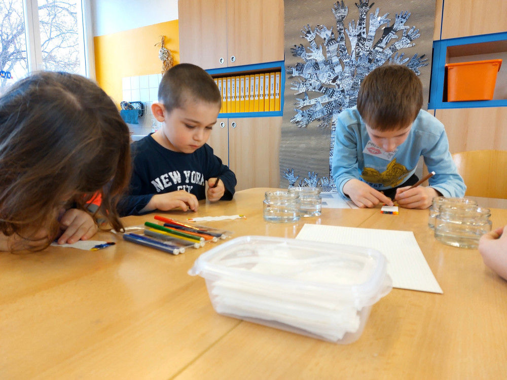 V centrech aktivit na téma JARO jsme tentokrát uvítali děti z mateřské školy. Sešlo se tu hned několik kamarádů, radost byla na obou stranách a spolupráce běžela, jak má. Děti si vzájemně pomáhaly a prožívaly uspokojení ze své práce.