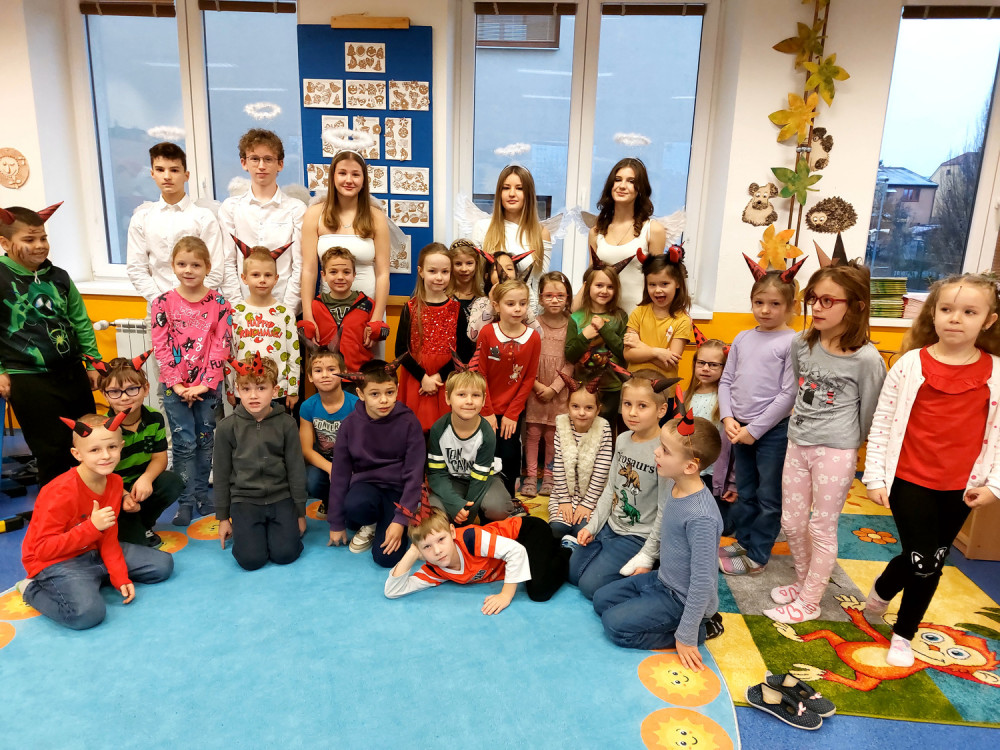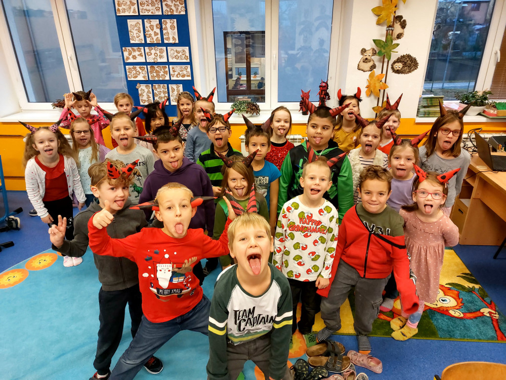 V pátek 6. prosince byl prima den. Už ve čtvrtek nás doma navštívil Mikuláš s čerty, no a v pátek jsme si to ve škole s chutí zopakovali, tentokrát v převleku za čertíky, což nám dodalo odvahy a příchozích čertů ze školního parlamentu už jsme se nebáli. Zvesela jsme jim zazpívali a zarecitovali čertovské básničky. Došlo i na společné foto. Ne že bychom nic nedělali, po celý den jsme plnili pekelně těžké úkoly a taky se u toho skvěle bavili.
