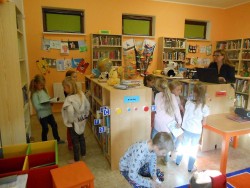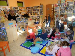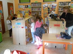 Při první návštěvě knihovny jsme se seznámili s prostředím knihovny, paní knihovnice nám vysvětlila jak si můžeme knihy vybírat a kde kterou knihu najít.Poslechli jsme si pohádku a pak jsme si půjčili knížky domů.Do knihovny půjdeme zase v listopadu.Zatím nám z vypůjčených knížek čtou rodiče, ale brzo už si budeme číst sami.