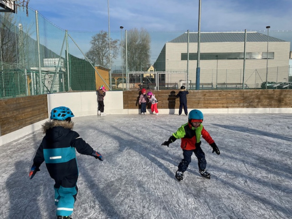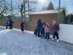 V lednu jsme se třídou párkrát využili místní kluziště, kde se někteří poprvé postavili na brusle, ale všichni se rychle přizpůsobili a nakonec kroužili po ledové ploše i bez pomocných hrazdiček a hlavně s nadšením (i přes mnohé pády)... Děkujeme rodičům, kteří měli možnost přijít a pomoci při obouvání i na ledě:-)...