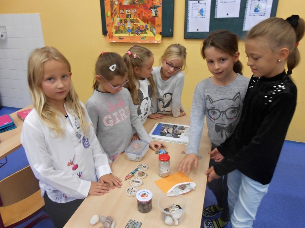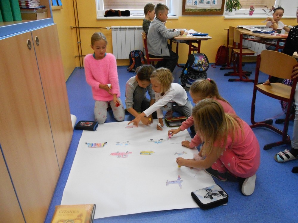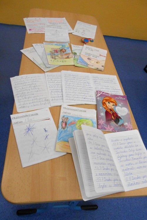 Nejdříve jsme si ve třídě udělali výstavku suvenýrů z dovolené a našich prázdninových deníků.Také jsme si přečetli úryvky z prázdninových deníků. Pak jsme si povídali, co všechno se nám při cestování líbilo a nakonec jsme společně vytvořili plakát s dopravními prostředky a pozdravy v různých jazycích. Bylo to moc zajímavé dopoledne a všichni jsme pracovali naplno.