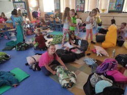 První společné spaní ve škole proběhlo na letní slunovrat. Jelikož je to nejdelší den v roce, i náš byl dlouhý. Po setkání ve škole jsme se vydali Pod kaštany na trochu prolézání, fotbalu a pěvečkého vystoupení. Na louce jsme zvládli venkovní hru ve skupinkách a spěchali na večeři. Piknik ve třídě byl bohatý a spousta dobrot nám také zbyla na energii na další den. Budíček jsme měli v 5:21 v duchu toho, že na slunovrat je i nejkratší noc! Ráno jsme si třídu zase krásně uklidili, nesměl chybět ranní fotbálek ve cvičebně a rozcvička u hřiště. To vše ještě před vyučováním! Těšíme se na spaní No.2, ale to až příští rok.....