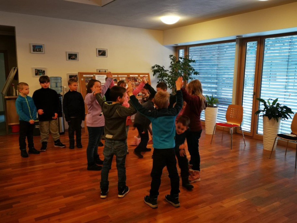 V povánočním čase žáci druhé třídy navštívili babičky a dědečky v pasivním domě pro seniory, aby je potěšili divadelní hrou i písní o třech králích a zimním tancem se zpěvem. Jako dárek jim na závěr předali své vyrobené papírové divadelní loutky. Účast byla hojná a sníh nádherně doplňoval zimní atmosféru.