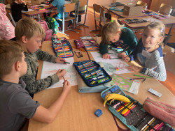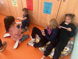 V říjnových centrech aktivit pozorujeme a objevujeme vlastnosti plodu růže šípkové, počítáme příklady a skládáme obrázek, rozhodujeme o pravdivosti vět a vymýšlíme životabáseň a také jsme zjistili, že v lese najdeme čtyři patra, která jsme se pokusili nakreslit.