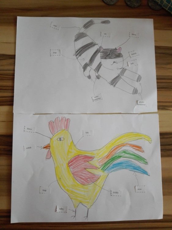 Výtvarná výchova a prvouka dohromady? Proč ne. Nakreslili jsme si kočičku a kohouta a zároveň si procvičili stavbu těla savců a ptáků.