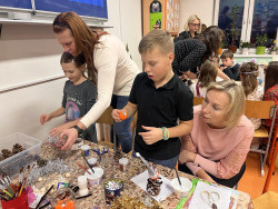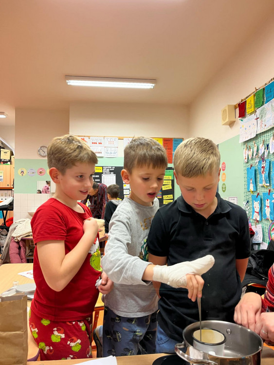 Letošní vánoční tvoření proběhlo zcela v režii rodičů. Šikovné maminky připravily atraktivní stanoviště pro všechny děti, nezapomněly ani na koutek s občerstvením. Děti si tak mohly společně s rodiči vytvořit vánoční svícen, ozdobu na stromeček, vánočního skřítka nebo pomádu na rty. Jedno stanoviště doplnila ještě paní vychovatelka ŠD - a to andílkem či skřítkem z borové šišky. A protože byl zrovna Pyžamový den, tvořili jsme pěkně pohodlně v domácím oblečení :-). Moc děkujeme za pěkné tvořivé odpoledne, které jsme si všichni náležitě užili!
