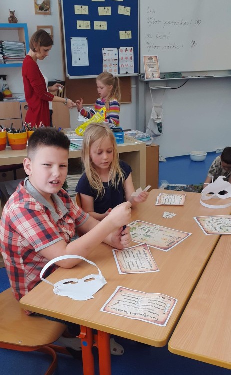 Čarodějnice patří mezi nejoblíbenější akce dětí... Letos jsme si je společně ve třídě opravdu užili. Děti měly nachystaná stanoviště, kde plnily různé čarodějnické zkoušky - kouzlení hůlkou, poznávání bylin, zvířat, let na koštěti a další... Nejtěžší byla asi zkouška odvahy, kde musely z nechutného lektvaru vylovit kouzelné vejce. Mnohé děti přinesly také různé čarodějnické pomůcky a hry, tudíž se dopoledne opravdu nikdo nenudil:-)... Tak snad nám nikdo 30. dubna neodletí...