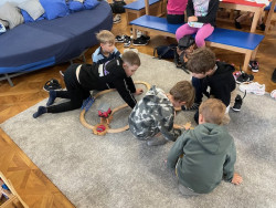 Kašpárkova dílna, krásný výukový program plný čtení, psaní a nových informací, jsme absolvovali v Rajhradě v Památníku písemnictví na Moravě. Paní lektorka nás velice poutavě poučila o vzniku písma, čím a na co se dříve psalo a děti si mohly vyzkoušet psát brkem, na psacím stroji nebo iluminovat stranu s vybraným písmenem svého jména. Určitě se rádi vrátíme na další programy.