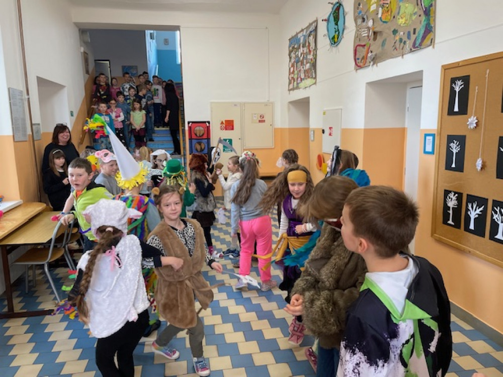 V úterý před popeleční středou vrcholí období masopustu. I v naší třídě, kde jsme se díky centrům aktivit ponořili do objevování tradic této doby, jsme zakončili stylově - tedy maškarním průvodem a veselicí. Děti přišly v krásných maskách, pilně vymýšlely různé taškařice, kterými zpestřily výuku i dalším třídám, a dokonce měly i menší hostinu díky ochotné mamince, která napekla úžasné koláče...