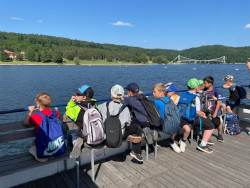 Třetí den jsme se všichni těšili na výlet na přehradu. Dopoledne jsme ještě stihli další záznam do deníku, procvičit násobilku, slovní druhy a měkké/tvrdé slabiky formou pohybové hry a po obědě jsme konečně vyrazili krásnou, ale i náročnou trasou k nedaleké přehradě. I tady si děti zahrály nějaké hry a hlavně si užily okružní plavbu parníkem. Nazpět jsme se vrátili přesně na večeři. Večer už proběhly klidnější aktivity - skupinové stavění majáku, zpěv a šlo se spát:-)...