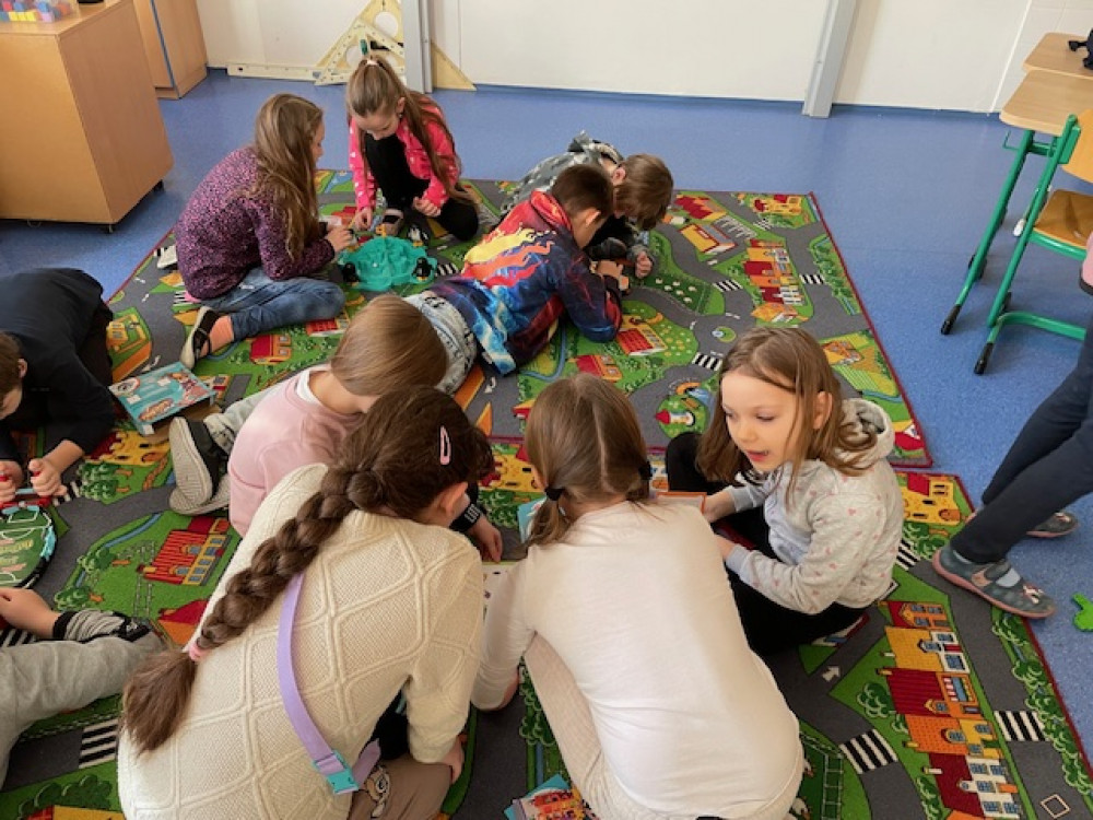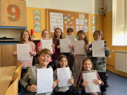 Ani jsme se nenadáli a jsme v polovině školního roku, se kterým je spojeno pololetní vysvědčení. V den vysvědčení jsme se učili pouze formou her a aktivit, které si děti vybraly a bavily je. První hodinu strávily v plavání, druhou si užily hry, které jsme nakoupili ve třídě před Vánocemi a ve třetí hodině doslova proběhly "Zimní stezkou", která byla nachystána na školní zahradě. V poslední hodině přišlo vytoužené vysvědčení, které jsme předali a děti konec hodiny sledovaly vybranou pohádku. Všichni si den užili a můžeme splečně vyrazit do 2. pololetí.