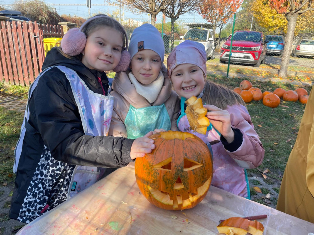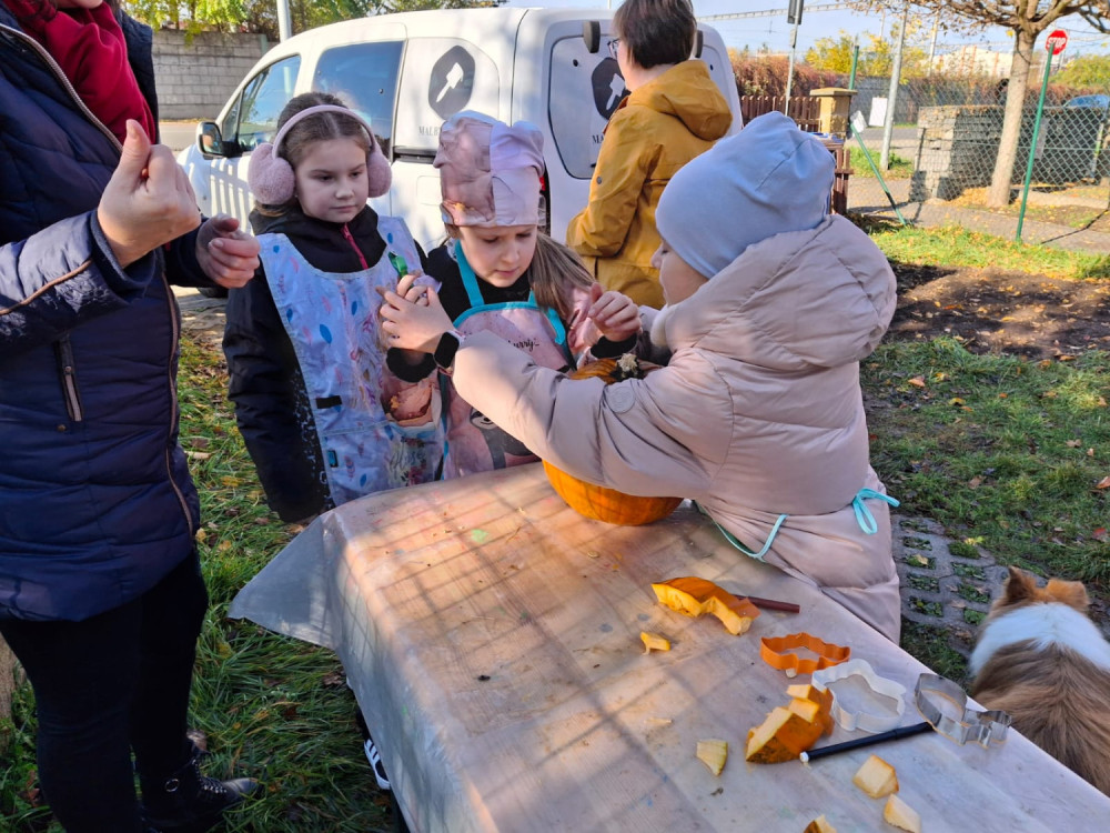 Dostali jsme možnost vyzkoušet si vyřezávání dýní na půdě rodinného centra Dubové lístky v Modřicích. Pracovali jsme samostatně i ve dvojicích a výsledek opravdu stál za to. Všechny prsty zůstaly celé. :)