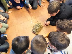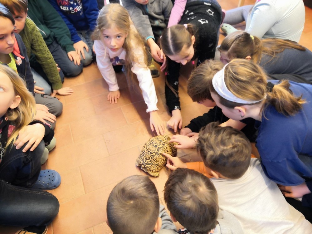 Poslední únorový pátek jsme se vypravili do střediska ekologické výchovy Hlídka na Špilberk. V Brně byl za letošní zimu sníh jen 3 dny a jeden z nich se nám podařilo zažít. Při bloudění okolo Špilberku jsme stihli sněhuláka i koulovanou. Na Hlídce jsme měli možnost pohladit si suchozemskou želvu a zažít výpravu do podzemí plné polodrahokamů.