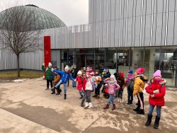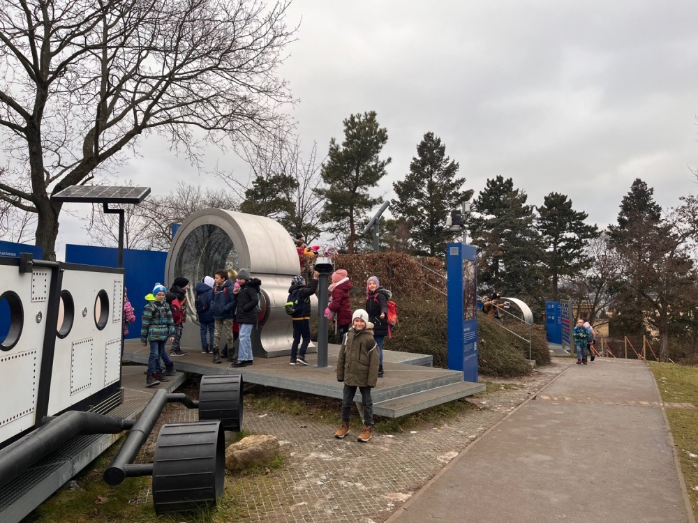 V hodinách prvouky se teď věnujeme tématu Sluneční soustava, proto jsme se vydali do brněnského planetária. Přiblížili jsme si záhadu, proč padá jablko ze stromu na zem a ne naopak - vzhůru. A nejen jablko - všechny věci kolem nejen nás, ale i celém vesmíru. Zjistili jsme, že díky gravitaci putují planety po svých drahách okolo Slunce. Že gravitace je vlastně kosmická síla, která spojuje úplně vše. Pořadem nás provázel kouzelnický učeň Felix a jeho kamarád ALBYX3 - malý chytrý robot, se kterým se ocitnou v muzeu Alberta Einsteina a společně zkoumají zákony přírody...