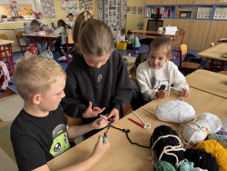 V rámci pracovních činností se naše šikovné žákyně Natálie Hornová a Nela Daňková ujaly role učitelek a připravily si pro své spolužáky hodiny háčkování.