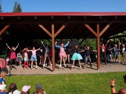 Na Zahradní slavnosti jsme si zpestřili konec školního roku skvělým vystoupením inspirovaným americkým muzikálem Pomáda. Choreografie se ujala zkušená paní učitelka Lucie Švancarová - moc děkujeme!
