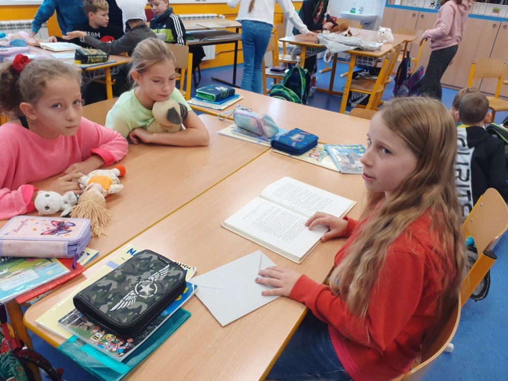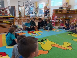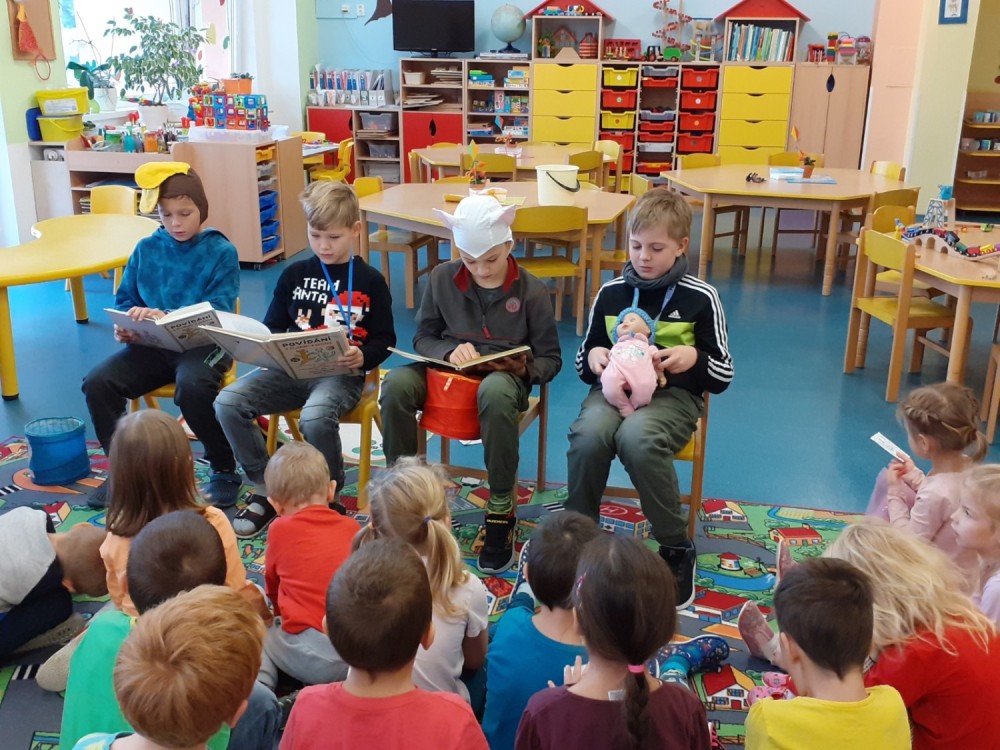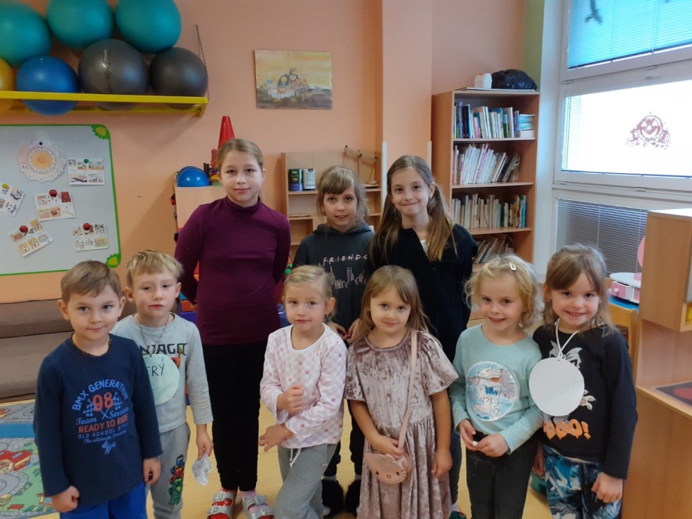 Čtvrťáci si letos vyzkoušeli práci s textem, přednes, dramatizaci a tvorbu zajímavých otázek k přečtené pohádce. Hledali v příběhu poučení a pokusili se jej předat dětem v předškolním věku. Navíc si nostalgicky zavzpomínali a navštívili paní učitelky, které se jim před několika lety ve školce věnovaly. Byla to velmi milá a přínosná zkušenost, které ovšem předcházela poctivá příprava ve skupinách, režijní a trochu i dramatická práce. Paním učitelkám ve školce děkujeme za milé a vstřícné přijetí.