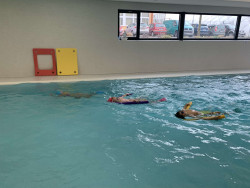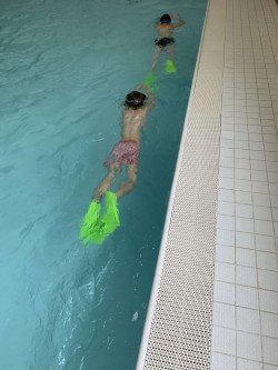 Většina žáků 2. a 3. tříd již měla možnost si vyzkoušet plavání s krátkými plaveckými ploutvemi. Plaváním s ploutvemi si žáci zlepšují plavecký styl, ale také vytrvalost, protože posílí spodní část těla. Nejvíce se však dětem líbí, že s ploutvemi plavou rychleji :)