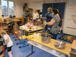 Dnešní předvánoční setkání s rodiči proběhlo v příjemné atmosféře. Zazpívali jsme si vánoční písničku. Děti vyráběly s rodiči vánoční přání podle vlastní fantazie. Někteří si ozdobili stromeček z papíru. Všichni jsme se naladili na přicházející vánoční svátky.