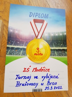 Žáci 5. tříd se zúčastnili turnaje ve vybíjené, který pořádala ZŠ Hrušovany u Brna. Celkem soutěžilo šest základních škol (Hrušovany u Brna, Modřice, Žabčice, Bratčice, Rajhrad a Židlochovice. Turnaj byl velice vyrovnaný, a to i v zápasech o celkové umístění. Žáci naší základní školy vybojovali těsně 3. místo v krásném a dramatickém souboji se žáky ZŠ Židlochovice. Zvítězili o jednoho vybitého. Všem zúčastněným gratulujeme.
