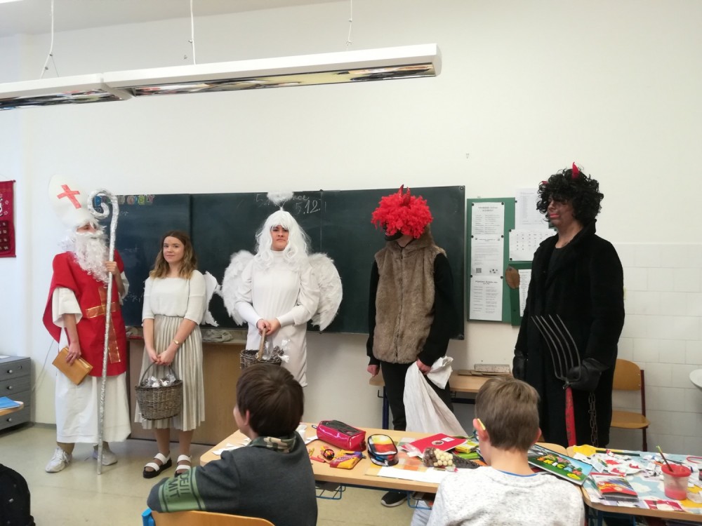 5. 12. 2019 Ve čtvrtek 5.prosince nás navštívil Mikuláš, doprovázený andělem a čerty. Nebáli jsme se, ba naopak, byli jsme rádi. Zlobivcům čerti domluvili a po zazpívání vánoční písně jsme byli všichni odměněni mikulášskou nadílkou. 8 / 12 / 2019 MG