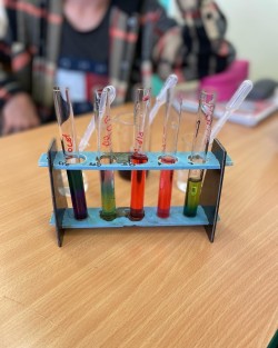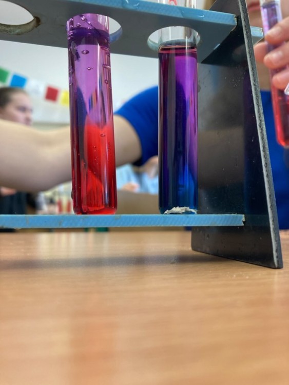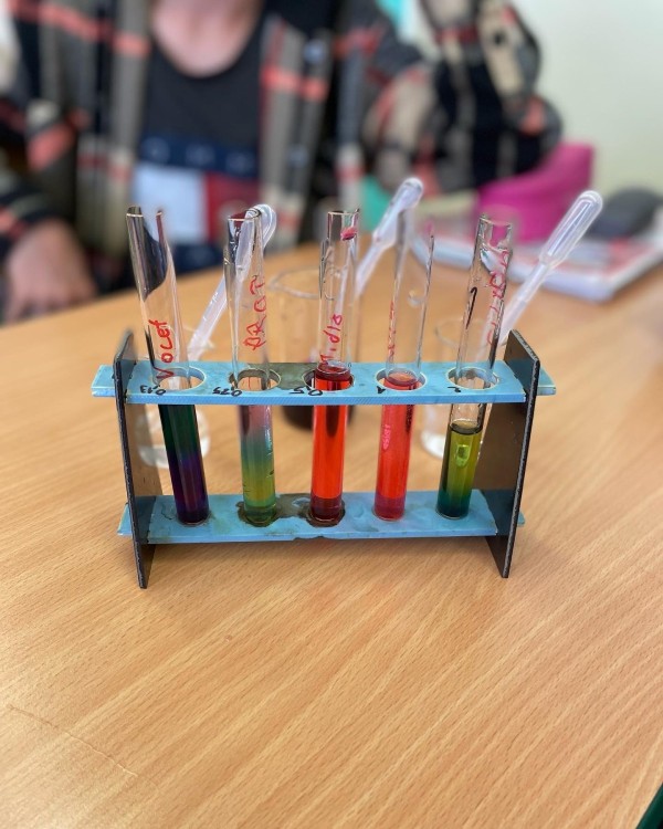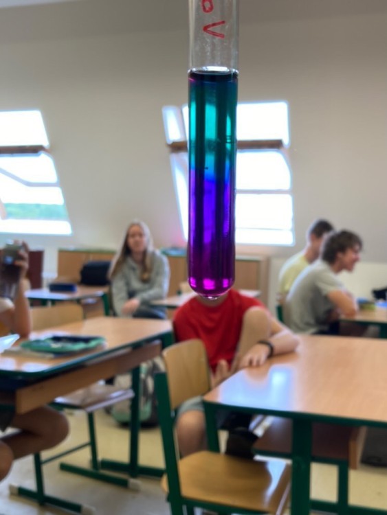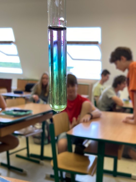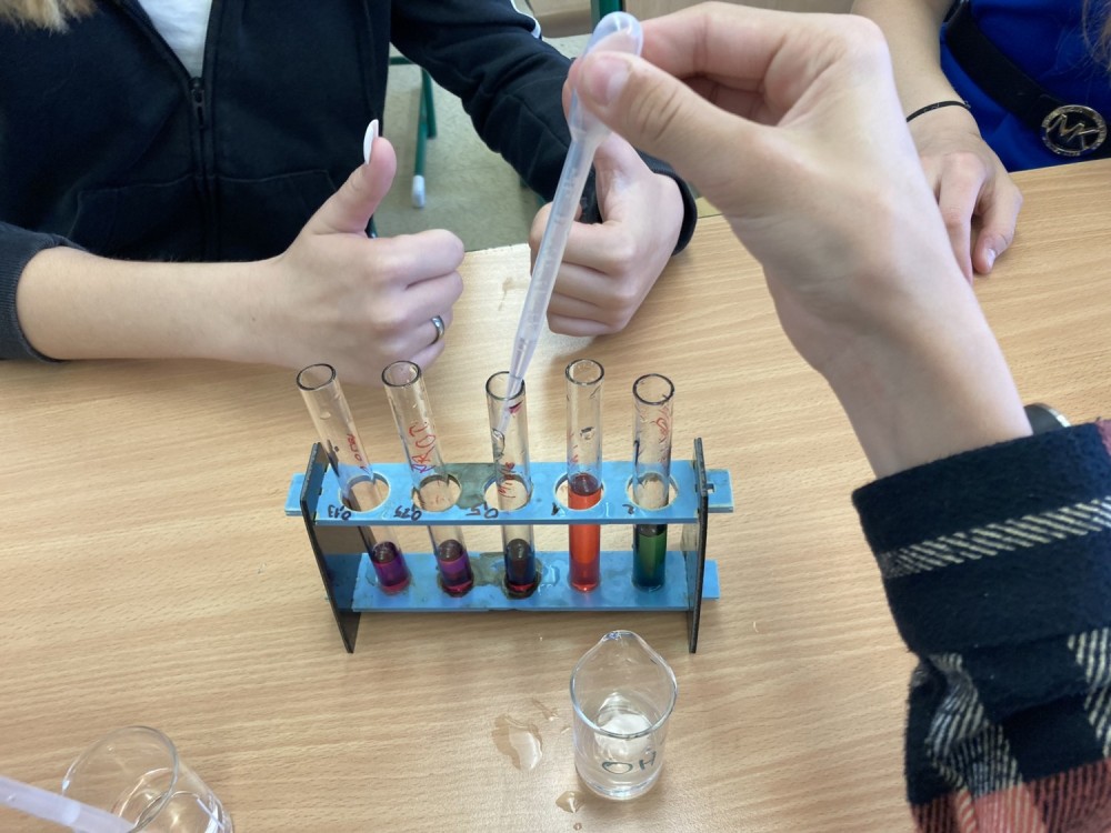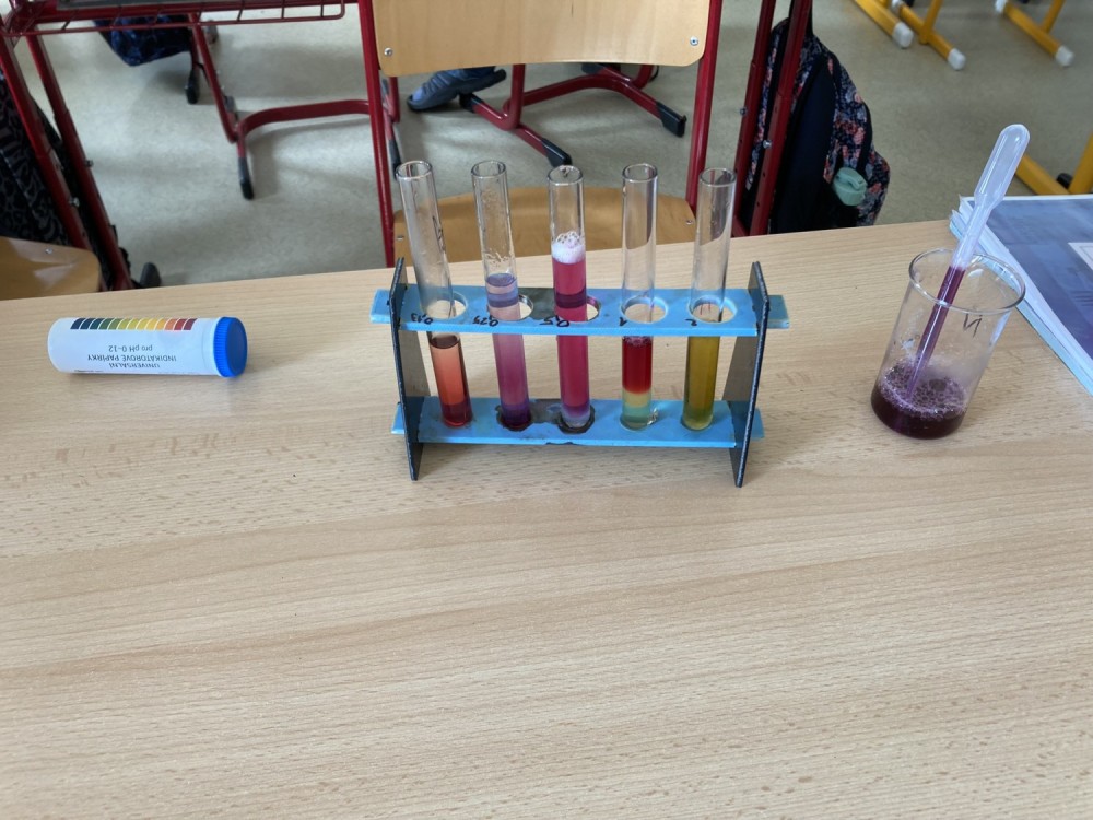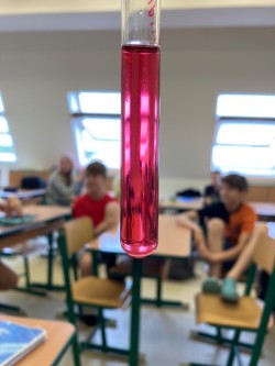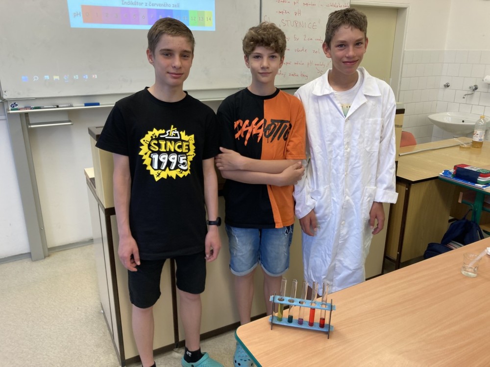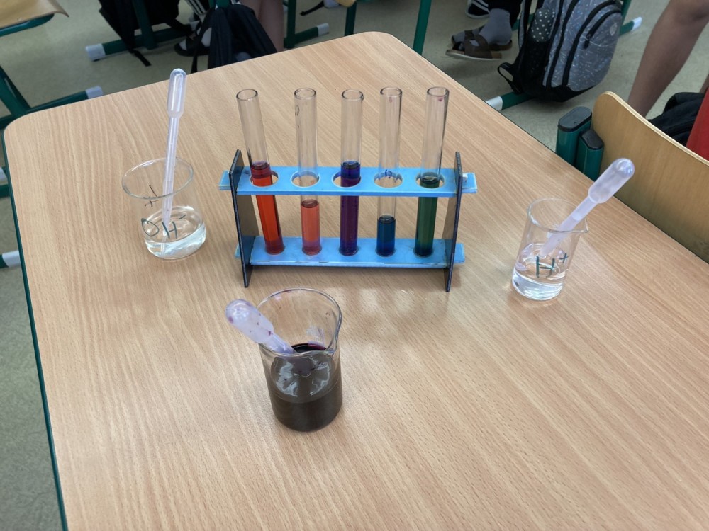 Tento týden jsme se s osmými třídami seznamovali s kouzlem pH indikátorů - látek, které mění barvu podle toho, zda se nachází v roztoku kyselém, nebo zásaditém.