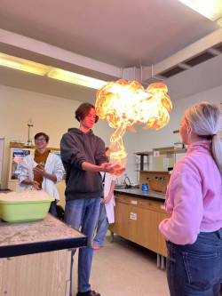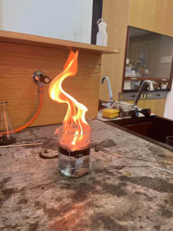 Na závěr jsme se věnovali alkanům a jejich vlastnostem. Mezi nejpůsobivější pokusy patřil hořící plyn na rukou, kdy si žáci mohli bezpečně vyzkoušet efektní chemickou reakci pod dohledem učitele.