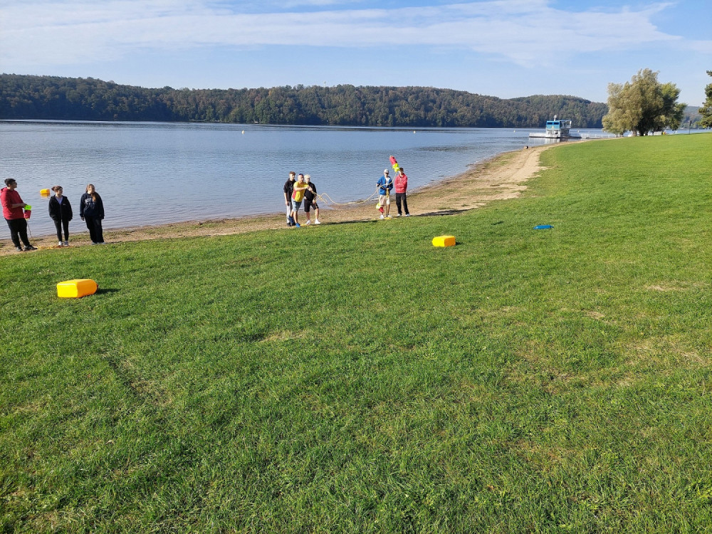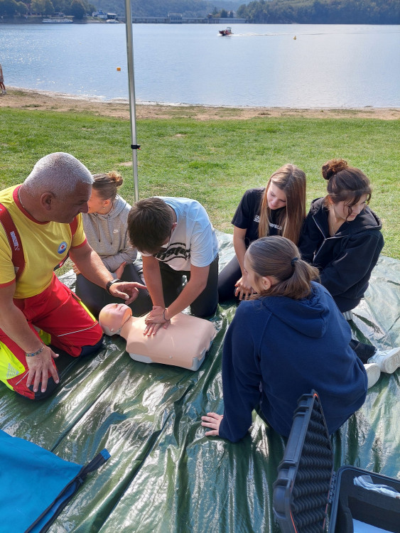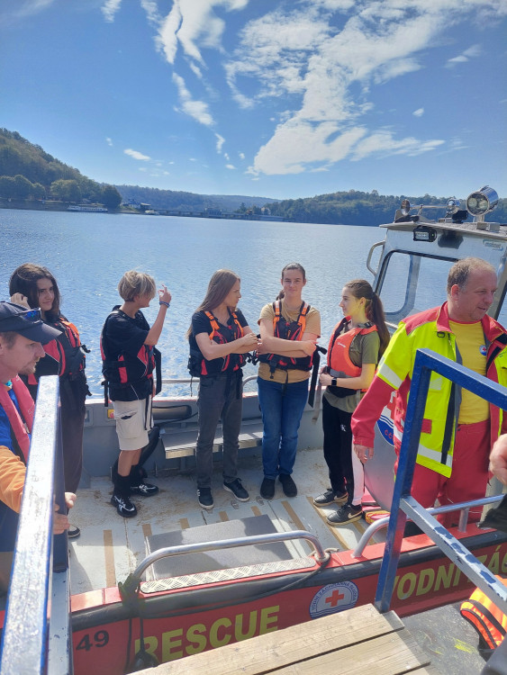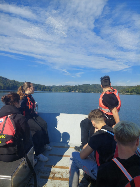 V pondělí 23. září jsme se se spolužáky 9. tříd vydali na výlet na Vranovskou přehradu, abychom tam strávili den s vodními záchranáři. Po cestě autobusem na nás čekalo krásné slunečné počasí na hlavní pláži přehrady. Během dne jsme si vyzkoušeli resustitaci, zastavit krvácení, ale i jak správně zavolat pomoc. Také jsme se projeli na záchranářském člunu po přehradě. Snažili jsme se naučit hodit pomocné lano tonoucímu, což nám zprvu moc nešlo, ale nakonec se někteří z nás přesně trefili na cíl, který byl přikotven ve vodě.