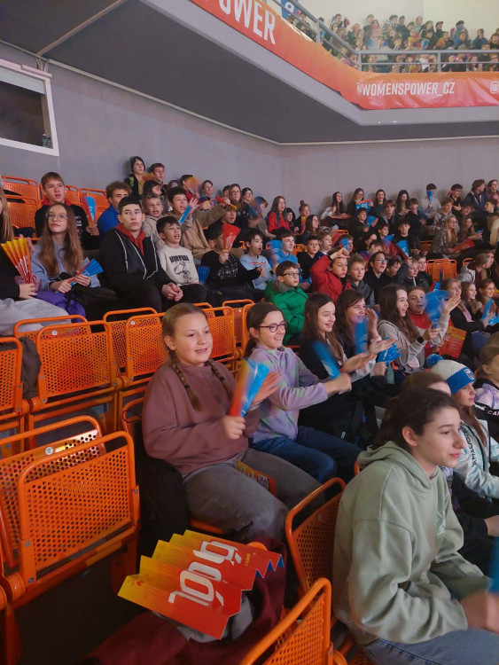 Na závěr utkání se nám dostalo mimořádného zážitku. Naše dvě paní učitelky měly tu čest předávat ocenění nejlepším hráčkám obou týmů, což bylo krásným a nezapomenutelným momentem celé návštěvy.