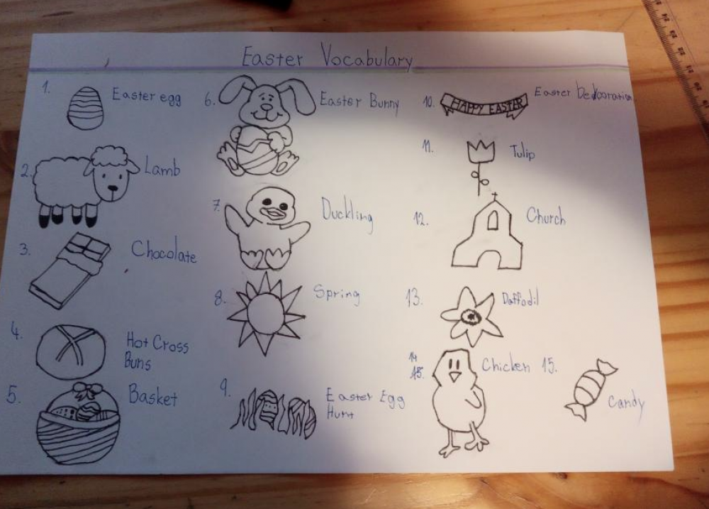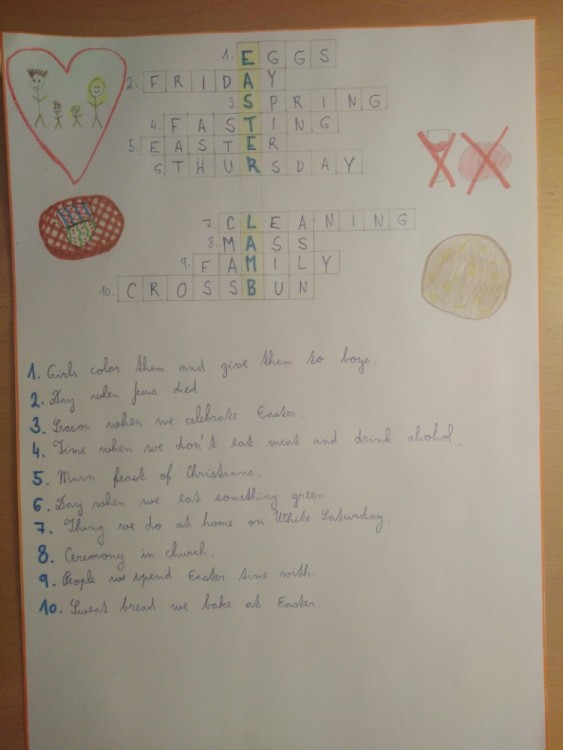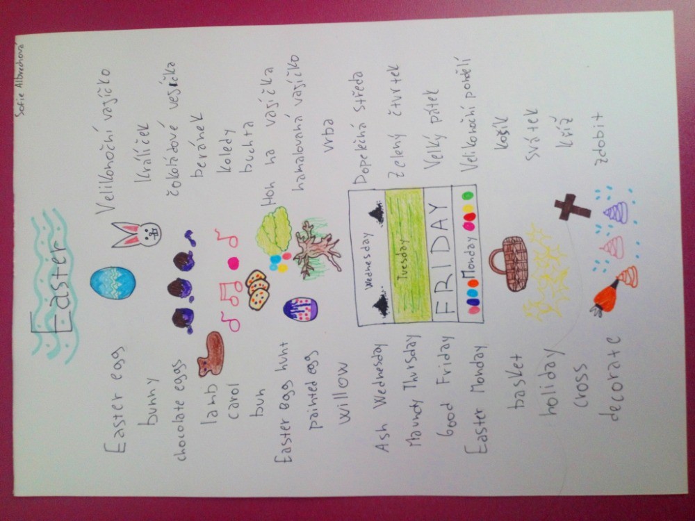 V předvelikonočním týdnu vytvářeli žáci 6. a 7. třídy velikonoční projekty v angličtině. Sešlo se mi mnoho krásných prací - popisy Velikonoc, křížovky, obrázkové slovníčky i komiksy. Některé z nich si můžete prohlédnout v této fotogalerii.