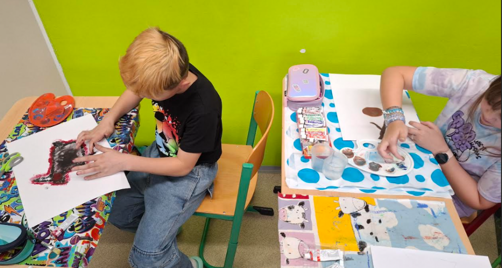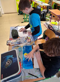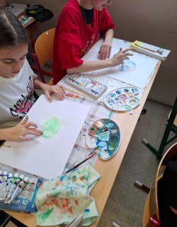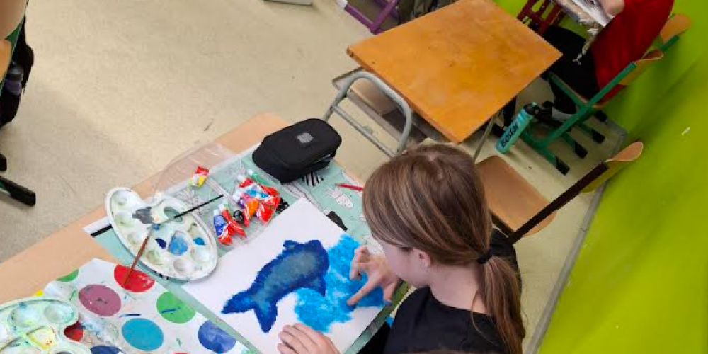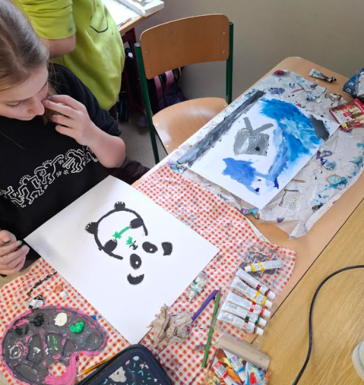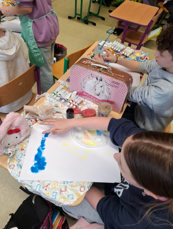 Ve výtvarné výchově jsme si vyzkoušeli haptickou malbu. Tedy "dotknout se" obrazu. Zadáním bylo "zvíře".