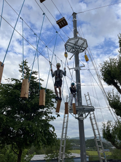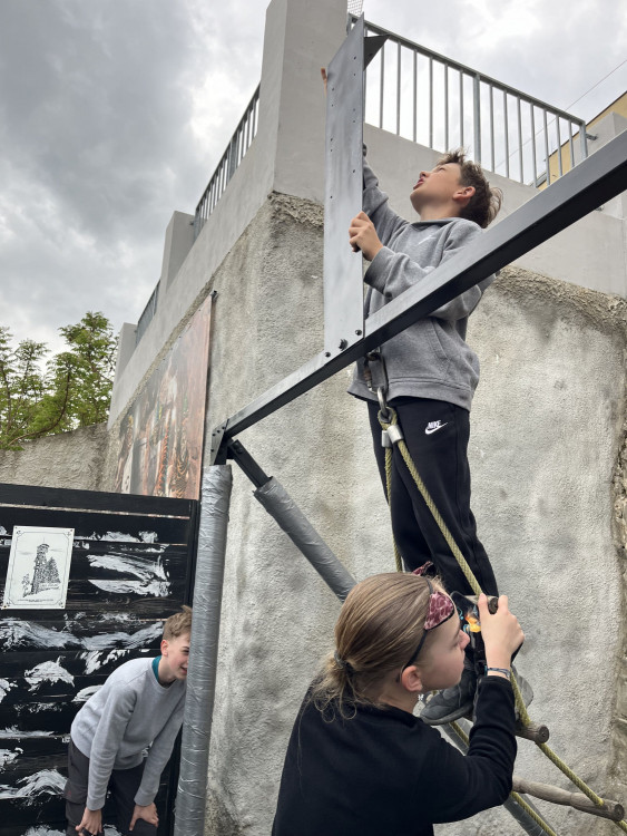 V Permoniu na žáky čekal pestrý program. Celé odpoledne strávili soupeřením na lanových aktivitách, v přilehlých bludištích či luštěním nejrůznějších úkolů. Každá skupina, která cestu dokončila, dostala malou odměnu. K večeři jsme si na ohni opekli špekáčky a už na žáky čekala cesta odvahy v důlní věži. Zkouška odvahy to byla i pro paní učitelku, aby žáky samotné po tmě do tak vysoké věže vůbec pustila. Žáci vše zvládli na jedničku.