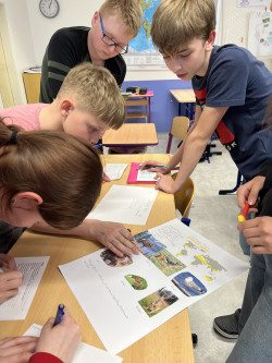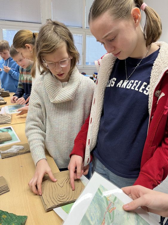 Kromě klasické práce v hodinách jsme si letos vyzkoušeli dělat modely terénu a následně s nimi pracovat, abychom uměli správně číst vrstevnice na mapě. V rámci tématu biosféra jsme rozvíjeli nejenom své dovednosti práce ve skupině, ale také jsme si zkusili, jaké je to být v roli učitele, když jsme svým spolužákům psali zpětnou vazbu, co se nám na jejich práci líbí a co by případně bylo dobré zlepšit. Dostali jsme se také trochu do terénu, kde jsme si zkusili práci s buzolou a měřítkem mapy a plánu. Některým skupinách se pomocí azimutů podařilo vyluštit ukrytou tajenku. Škoda, že některé skupiny se raději vzdaly předčasně, než aby zabojovaly a dorazily do cíle.