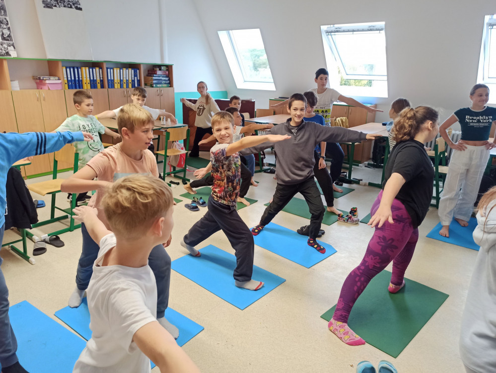 Letošní Den evropských jazyků se na naší škole nesl ve znamení sportů. Žáci 6.B si mohli vyzkoušet jógu, relaxaci a dechová cvičení, to vše ovšem v němčině. Na začátku dne se děti naučily některá německá slůvka, označující jógové pozice, například strom, kobra nebo pes. Trénovali jsme v aplikaci Quizlet a Blooket. Následovala jógová hádanka, kdy všichni zkoušeli, jak by asi podle nich mohly jednotlivé pozice vypadat. Někteří projevili velkou fantazii a také fyzickou flexibilitu. Poté jsme jednotlivé jógové ásány modelovali z pastelíny. Následovala relaxace po obědě a povídání, potom jsme se společně naučili ještě některá německá slůvka, označující části těla. Celý den byl plný tvoření, kreativity, pohybu a zábavy, což při závěrečném hodnocení většina žáků ocenila.