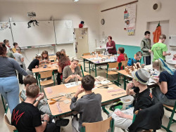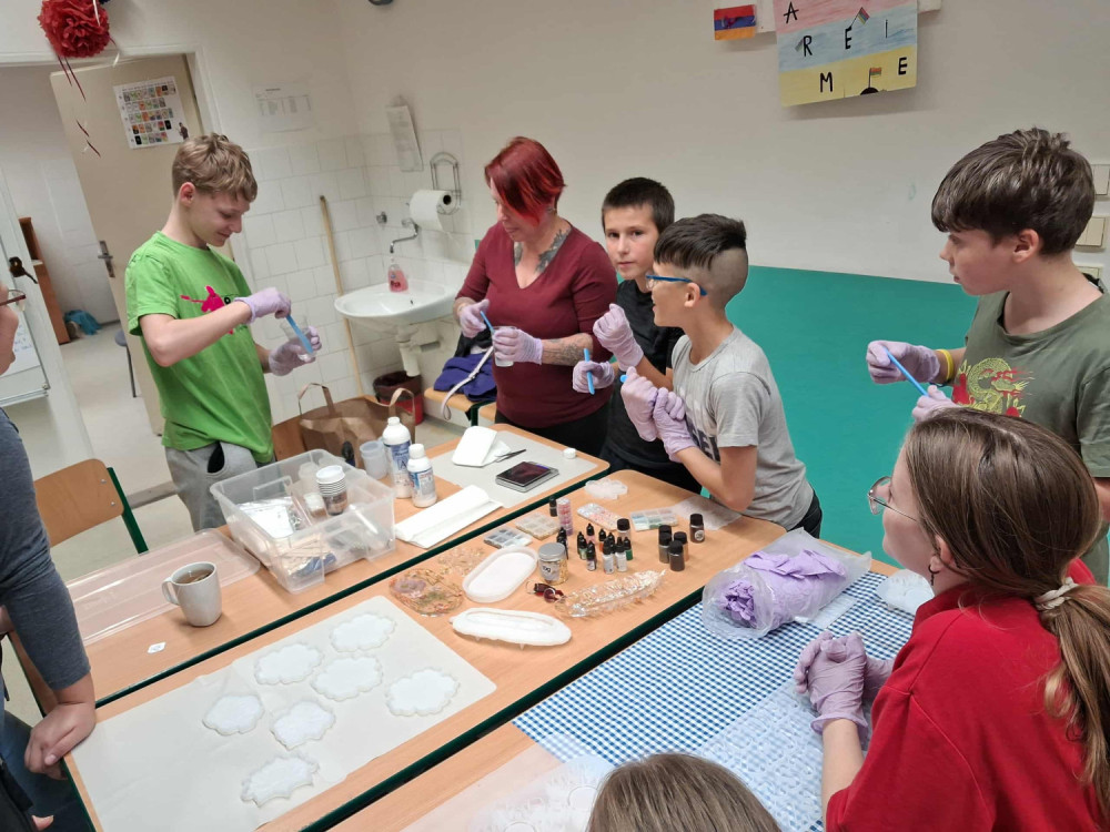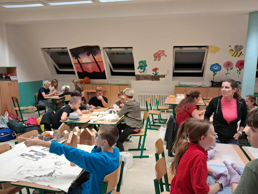 V 7.B máme skvělé rodiče! Nabídlo se nám několik maminek, že s dětmi vytvoří výrobky, které bude možné prodávat na Vánočním jarmarku. A tak jsme se sešli ve škole netradičně v pátek navečer, děti vyráběly přívěšky, náramky, dřevěné domečky, panenky z provázků, náušnice a další krásné dekorace. Byla to zábava a také krásná, tvořivá a kreativní práce. Jiní rodiče nám přinesli nebo poslali občerstvení, a tak jsme si dělali přestávky na palačinky, ovoce, perníky, minipizzy a jiné dobroty. Moc děkujeme paní Vološinové, paní Petrášové, paní Martincové, paní Novákové, paní Syslové, paní Kořenkové, paní Skřipcové a paní Kořízkové!