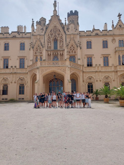Na konci školního roku jsme podnikli výlet do Lednice. Rychlíkem z Brna a autobusem z Podivína jsme dojeli na náměstí v Lednici, kde nás čekala úniková hra. Rozdělili jsme se na skupinky a šli si zahrát buď Piráty, nebo Klatbu zednáře. Procházkou zámeckým parkem jsme se přemístili k minaretu. Od minaretu jsme se jeli lodičkou po Černé Dyji a vylodili jsme se u Janohradu. I když bylo velké teplo, tak jsme zvládli pěšky dojít až na vlakové nádraží v Ladné. Výlet byl náročný, ale velmi jsme si ho užili.