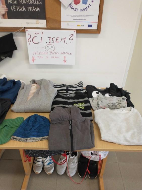 13. 1. 2023 Postrádáte doma mikinu, čepici, přezůvky, pytlík na tělocvik? Podívejte se na fotografie věcí zapomenutých v šatnách na Benešove. Jestli poznáváte nějaký svršek svého dítěte, je k vyzvednutí v naší "galerii" u vrátnice na Benešove. 13 / 1 / 2023 MZ