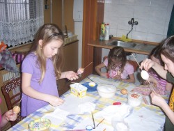 Již se nám blíží oslavy Velikonoc a tak jsme navštívili centrum volného času Bystrouška v Brně Bystrci. Opět jsme si mohli osvěžit některé tradiční velikonoční zvyky. Seznámili jsme se s historií zdobení kraslic a děvčata si i nazdobila svá vlastní vajíčka technikou decoupage. Z proutí si upletla rybky, zahrála si typickou jarní hru - kuličky. Kluci si stihli vyrobit káču, se kterou poté pořádali závody, a upletli si velikonoční pomlázky. Mimo to jsme si všichni upekli několik velikonočních perníčků. Na závěr nechyběla ani cvičná "mrskačka děvčat", kdy hoši dostali za odměnu mašličku.