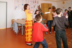 Vyprávěla nám příběh o lidech i přírodě, při kterém využívala akustické etnické hudební nástroje (didgeridoo, djembe, tibetské misky ...). Děti se do příběhu také zapojily, zrelaxovaly a zároveň si zařádily. Na závěr nám paní Jarmila o jednotlivých nástrojích popovídala. Řekla, jak se jmenují, odkud pochází, z čeho jsou vyrobené a také vysvětlila, jak se na ně hraje.