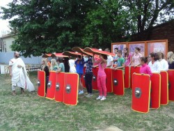 Žákům byla představena výzbroj legionáře, některé prvky výcviku a vojenská taktika. To vše si mohli dobrovolníci sami na sobě vyzkoušet.