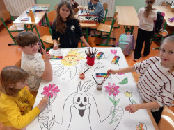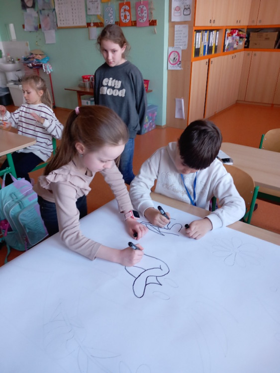 Téma "Krtek a jaro" si zvolily samy děti, a tak jsme se opět pustili do práce. Společné tvoření nás baví a práce se nám podařila.