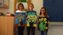 Slunečnice je téma soutěže, do které přispěly svými výtvory i děti naší školy. Soutěž vyhlásila firma Delikomat ve spolupráci s hospicem sv. Josefa a kavárnou Slunečnice v Rajhradě, kde budou všechny práce vystaveny. Během července pak můžete pomoci vybrat nejkrásnější práce i Vy.