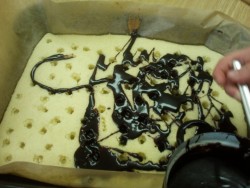 Píchaná buchta je buchta, která děti velmi bavila - upečený základ rozpíchaly vařečkou a dírky polévaly čokoládou. Olizovaly se až za ušima:))))