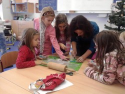 Dnes jsme v kroužku vyráběli přívěsky na krk z FIMO hmoty různých barev. Hmotu jsme nejdříve řádně zpracovali, pak vyváleli, nakrájeli, tvarovali a zase vyváleli. Nakonec se vše upeklo v troubě a přivázalo na šňůrečky. Výsledek je dokonalý:)))