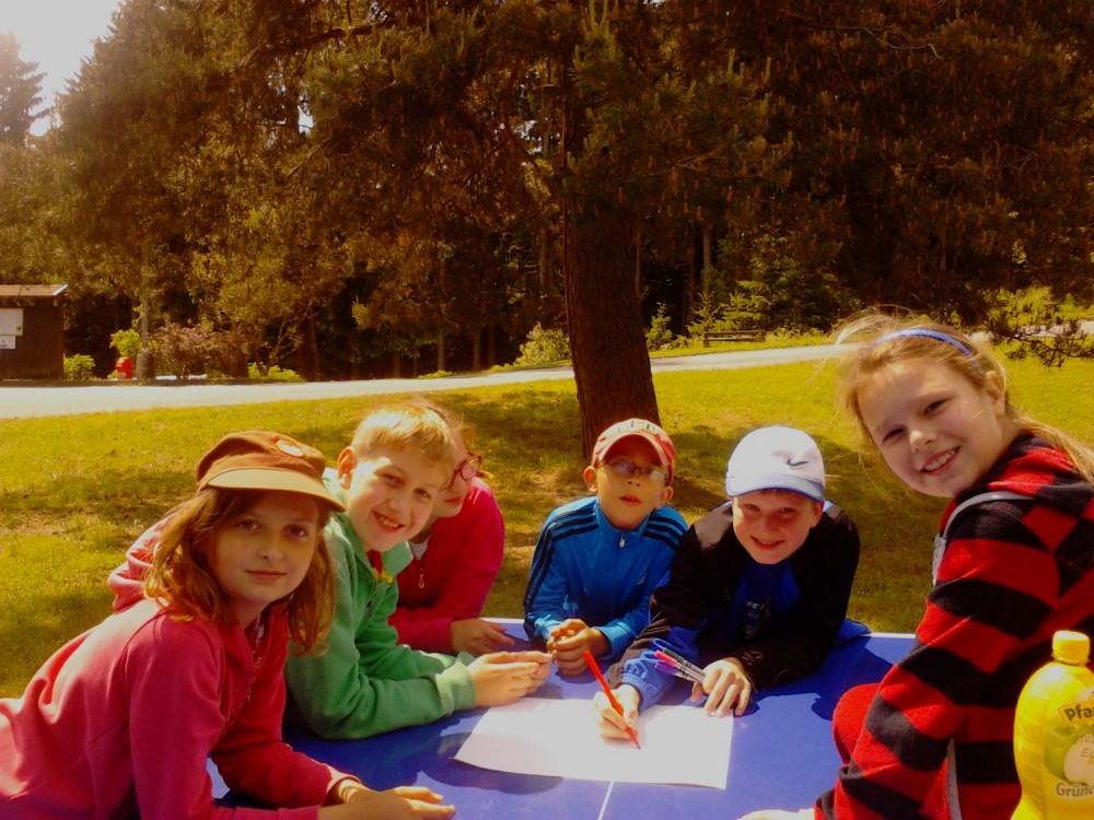 V týdnu od 2.června do 6.června jsme se zúčastnili školy v přírodě v České Kanadě u Kunžaku na Vysočině. Bylo tam moc krásně, počasí vyšlo perfektně, stále svítilo sluníčko, které se občas schovávalo za mráčky. Program jsme měli velmi bohatý, čtvrťáci cestovali časem od novověku po pravěk, páťáci absolvovali olympijské hry. Spolu s paní učitelkami nás vedli instruktoři Libor, David a Šárka, se kterými jsme byli navýsost spokojeni.Mnohému jsme se naučili, řadu dovedností jsme i ukázali, uvařili jsme si v přírodě na ohništi oběd - bramborový guláš, který nám moc chutnal, dovezli jsme si trička s vlastnoručně vytvořenými obrázky. Prožili jsme zde krásný týden, na který budeme vzpomínat už jen na fotografiích.